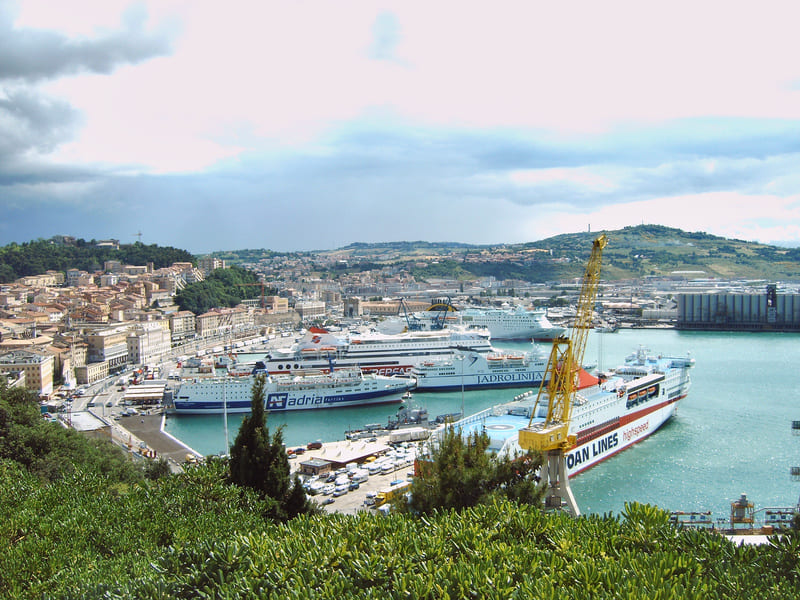 Ancona, gesticht door de Grieken (Ancon betekent elleboog in het Grieks en verwijst naar de vorm van de baai) die er in de 4de eeuw v.Chr een tempel gewijd aan Aphrodite (Venus) bouwden op deze heuvel. In de vloer van de huidige Dom ziet men er nog overblijfselen van.