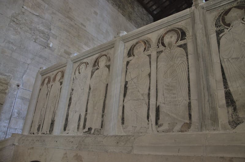 Rechts in het midden merk je een soort balustrade op met afbeeldingen van koning David, San Ciriaco enz… een meesterwerk uit 1189 gemaakt door een zekere meester Leonardo.