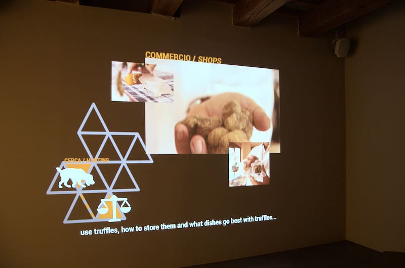 Uiteraard kwam ook de gastronomie aan bod ; in een zaaltje met multimediale projecties stond een tafel waarop meerdere truffelgerechten vermeld werden: 18 de eeuw de truffel lasagna, 19de eeuw de gebraden fazant met truffel en 20 ste eeuw het dessert zabaione met truffels.