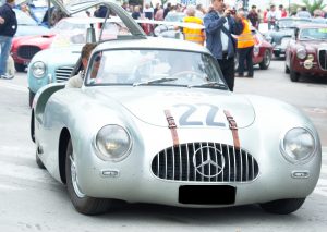 Die „1000 Miglia“, Italienisch für „1000 Meilen“, war ein Langstrecken-Autorennen auf öffentlichen Straßen, das zwischen 1927 und 1957 stattfand. Die jährlich wechselnde Strecke startete dabei immer in Brescia und hatte ihren Scheitelpunkt immer in Rom. Die Fahrer traten nicht gegeneinander an, sondern starteten versetzt und ihre Zeit wurde genommen. Das Rennen wurde fast ausschließlich von italienischen Wagen gewonnen, allerdings gewannen 3 Mal auch Deutsche Wagen, einmal ein BMW 328 im Jahr 1940 und zweimal ein Mercedes. Zuletzt 1955 ein Mercedes 300 SLR. Neben dedizierten Rennwagen wurden auch kleine Tourenwagen zugelassen, wie zum Beispiel ein Fiat 500 oder ein Renault 4CV.