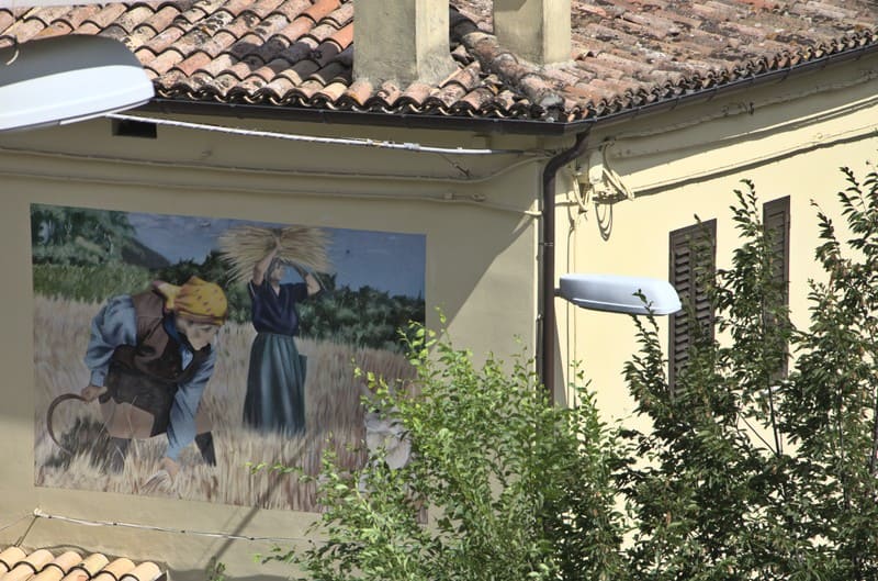 Streetart wird immer beliebter, man denke nur an Banksy. Auch in den Marken finden wir Wandmalereien oder Murales, wie sie hier genannt werden. Isabelle und Erik besuchten vor ein paar Wochen ein Dorf namens Cacciano, wo die Leute vor 11 Jahren mit den Murales begonnen haben. Die Bilder, die Isabelle zufällig auf Facebook gesehen hatte, hatten sie neugierig gemacht: