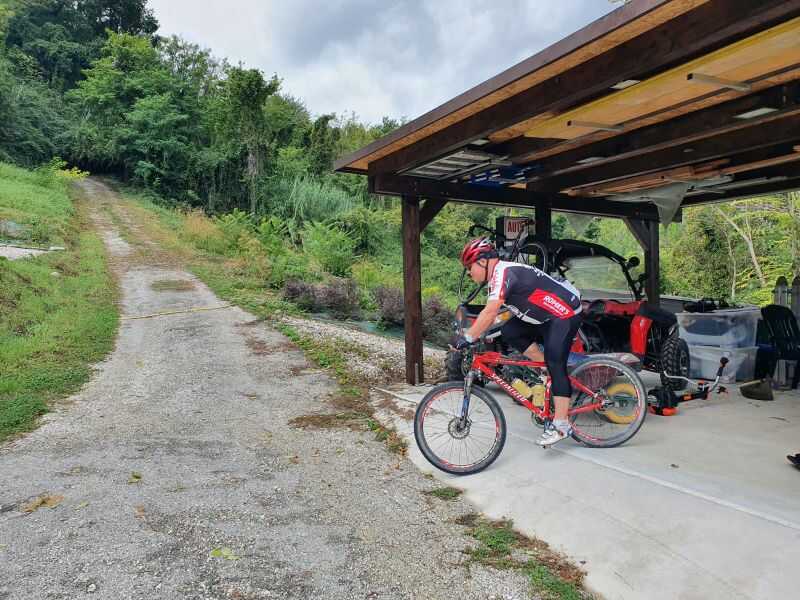 Über Schotter, kleine Wege und ein kurzes Stück Single Trail (Pfad) geht es circa 3,5km tendenziell bergab und dann auf breitem Schotterweg wieder aufwärts zum Pian dell’Elmo. Diese Hochebene ist ein beliebter Ausgangspunkt für Wanderungen rund um den Monte San Vicino. Als ich mit dem Auto eintrudele ist Otto schon da und wir genehmigen uns ein Bier in der sympathischen Bar des „Elmo Camping“.