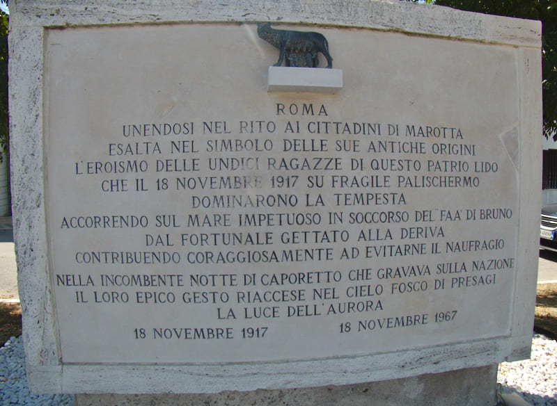 On 18/11/1967, 50 years after this heroic act, the municipality unveiled a beautiful memorial stone. Where the then mayor from Rome gave permission to put the Roman symbol of the she-wolf and Remus and Romulus on the memorial stone.